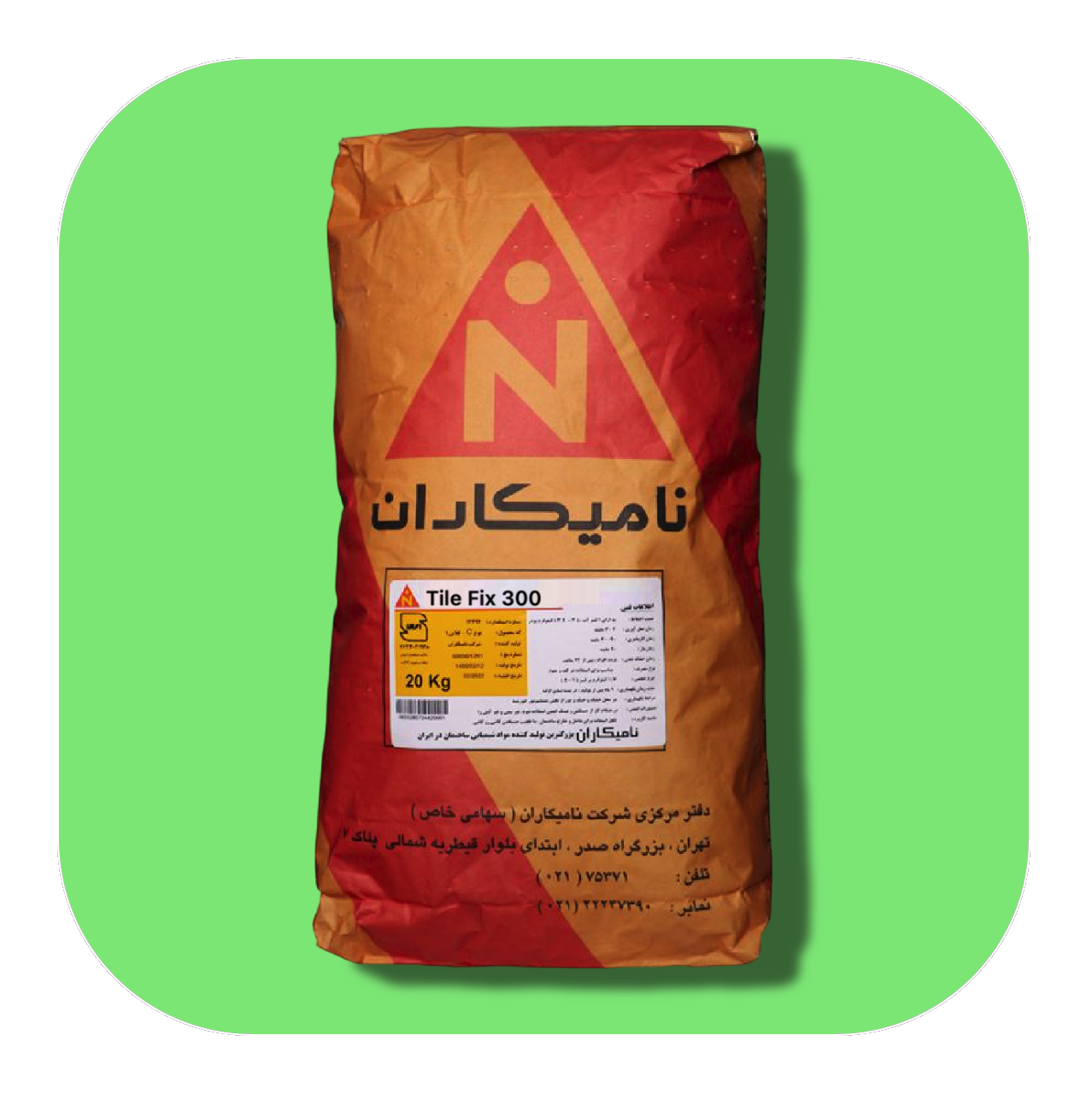چسب کاشی Tile Fix 300 تولیدی شرکت نامیکاران، چسب کاشی پودری خاکستری رنگ آماده مصرف است که ترکيبی از سيمان، افزودنيهای پليمری مختلف، پرکننده های معدنی و مسلح شده با الياف سلولزی می باشد. این محصول به دلیل کیفیت چسبندگی بسیار بالایی که دارد برای چسباندن مستقیم کاشی روی کاشی استفاده می شود. چسب کاشی پودری تایل فیکس 300 تنها با افزودن آب به آن به چسبی با قدرت چسبندگی زیاد و مقاوم در برابر نفوذ آب تبدیل می شود. به دلیل مقاومت بالای این چسب در برابر جذب آب، میتوان از این چسب برای فضای بیرون نیز استفاده کرد. این محصول مطابق با استاندارد ملی ایران به شماره 12492، نوع C (کلاس1) می باشد.